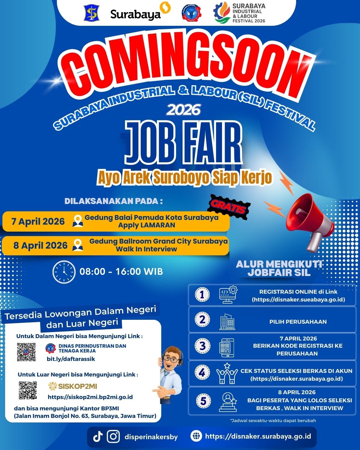 #ArekSuroboyoSiapKerjo #JobFairSurabaya #SILFestival2026 #DisnakerSurabaya #LowonganKerjaSurabaya