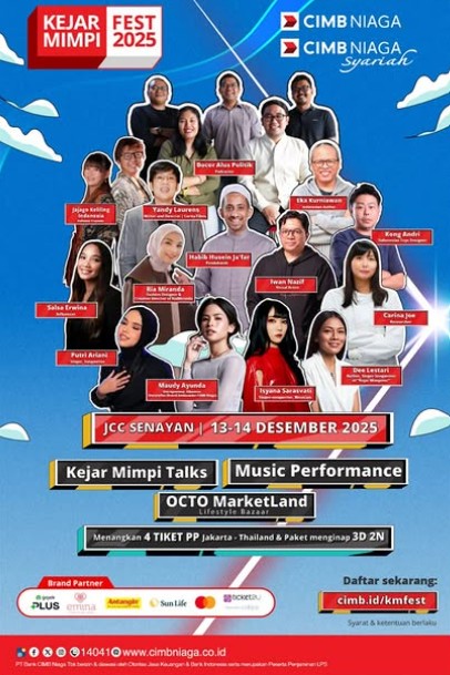 CIMB Niaga – Kejar Mimpi Fest 2025 hadir sebagai ruang berkumpulnya para visioner, kreator, inovator, dan anak muda yang ingin mewujudkan mimpi lebih cepat! 🚀